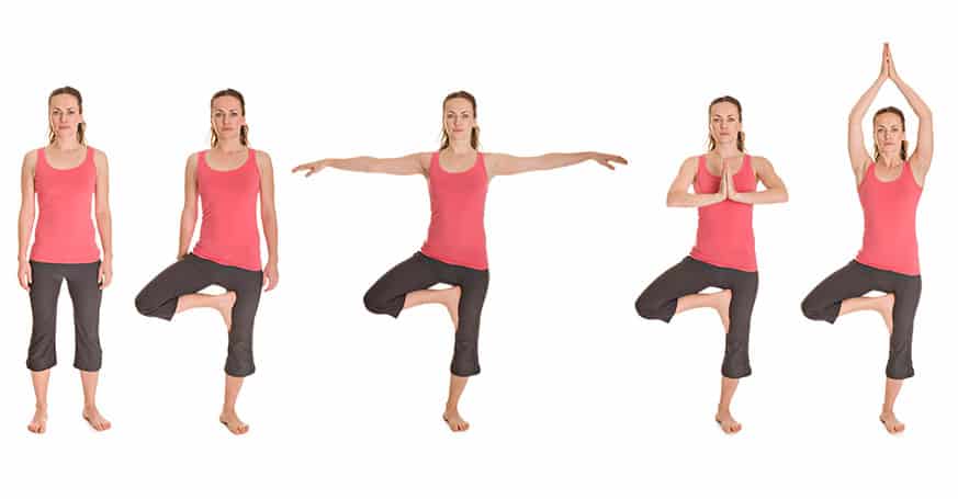 Kita pozą Vrikšasana panaši į pirmą, tačiau čia mes lavinsime pusiausvyrą. Taigi, atsitokite lygiai taip pat kaip ir aprašėme prieš tai. Kūno svoris turi būti perkeliamas ant kairės kojos, o dešinė sulenkiama ir turi kulnu siekti kairės kojos šlaunį. Stovime gervės pozoje. Rankų delnus suglauskite prieš save. Būkite kelias sekundes, kol koja nepradeda labai drebėti. Paskui po truputį nuleiskite rankas ir lėtai sukeiskite kojas. Išlaikyti pusiausvyrą reikia nuo 5 iki 20 sekundžių. Kartoti bent jau 10 kartų kiekvienai kojai.